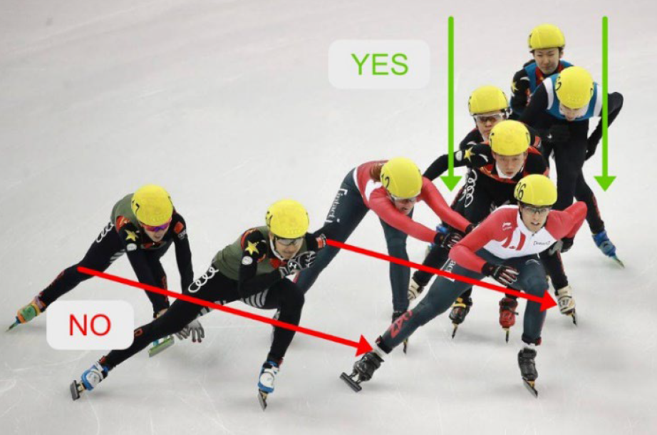 至于“变道”,这在直道是被允许的,但前提是足够领先,具体标准是变道运动员的臀部必须位于另一运动员肩膀的前方。如果领先没有这么多,而是在并行时强行把别人挤走,就可能受到判罚。